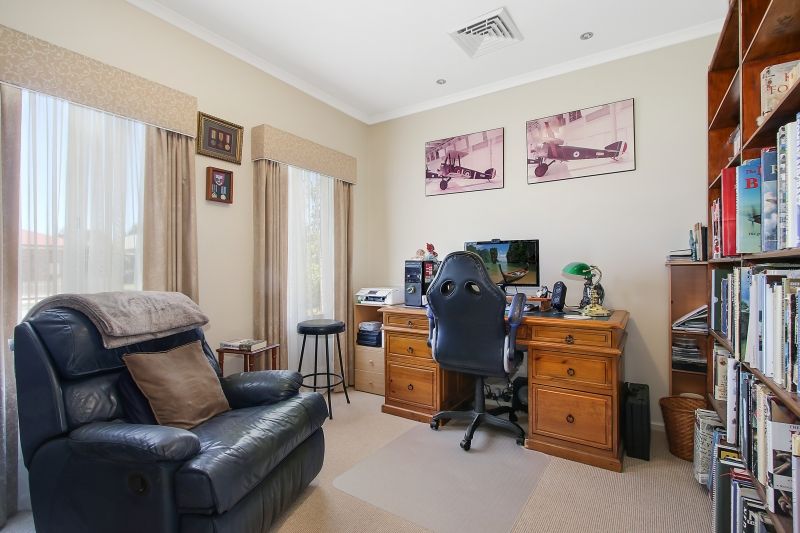 Formal lounge at the front of the home flowing onto stunning master bedroom with ensuite and walk in robe plus extra office / nursery or 4th bedroom. The wide hallway leads into the open family and dining area plus kitchen with all L shaped breakfast bar, ample cupboards / bench space and modern appliances. 9' ceilings throughout, 2 extra robed bedrooms and a pristine central bathroom. Ducted air-conditioning (heating & cooling) delivers constant comfort through the home while the 3.5kw solar system helps with the power bills. An internally accessed remote control double garage with rear access to the elegantly landscaped gardens. Lock up workshop with concrete floor and power. Low maintenance and perfectly positioned in this family friendly, popular residential area.
