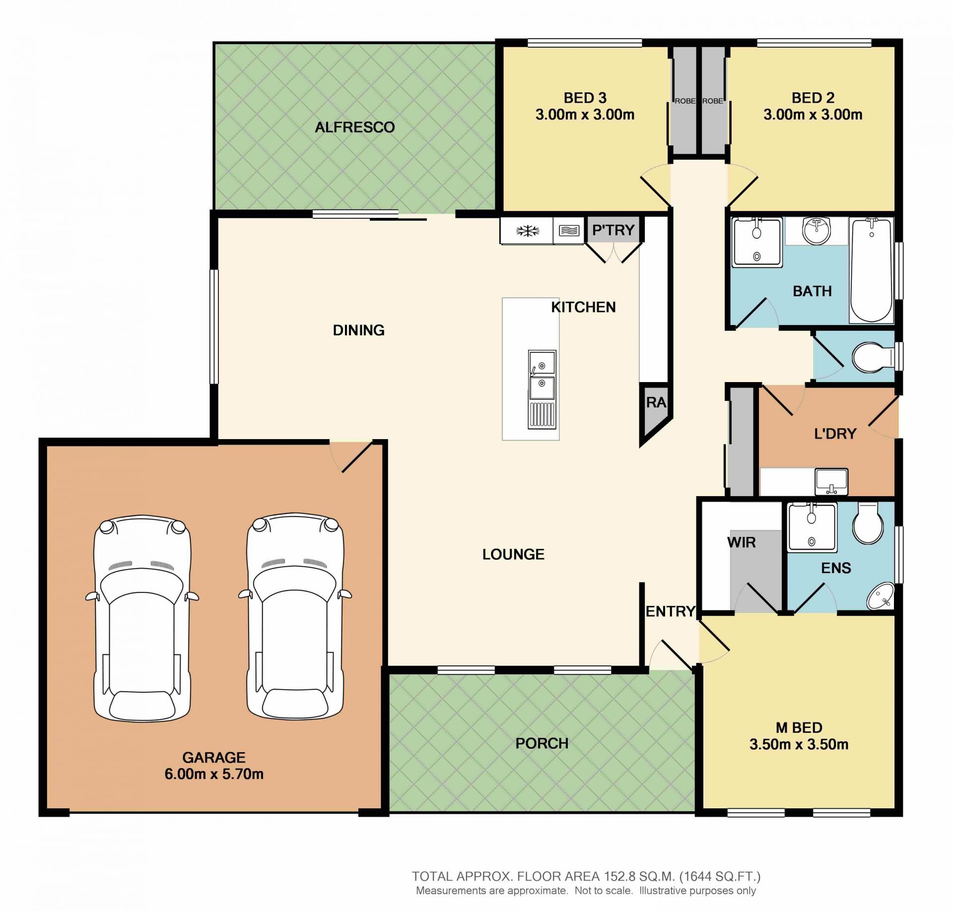 • Double car garage with roller door and rear yard access.
