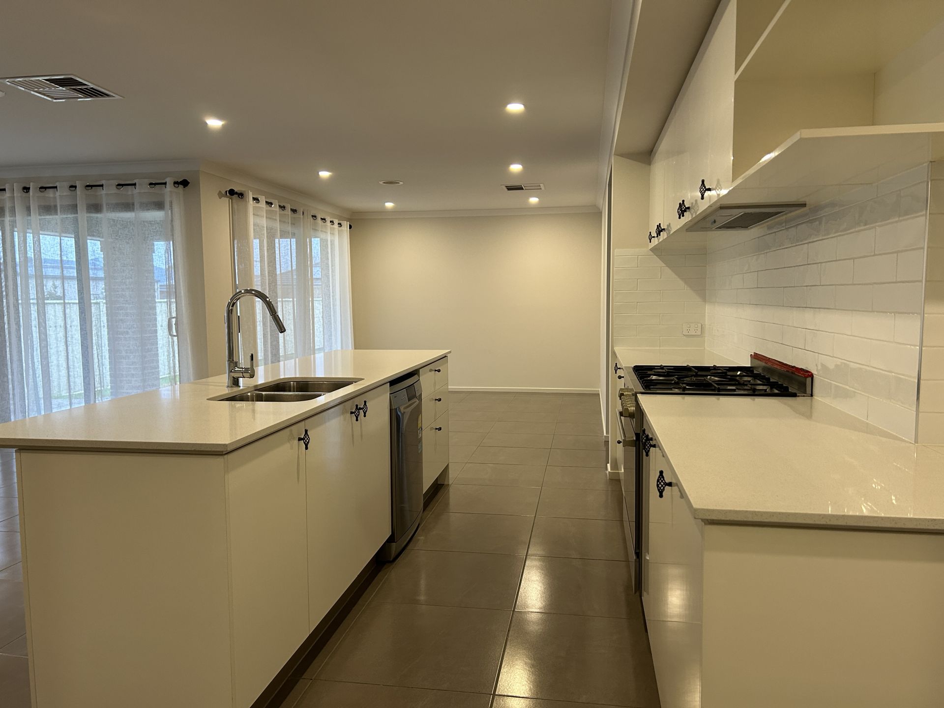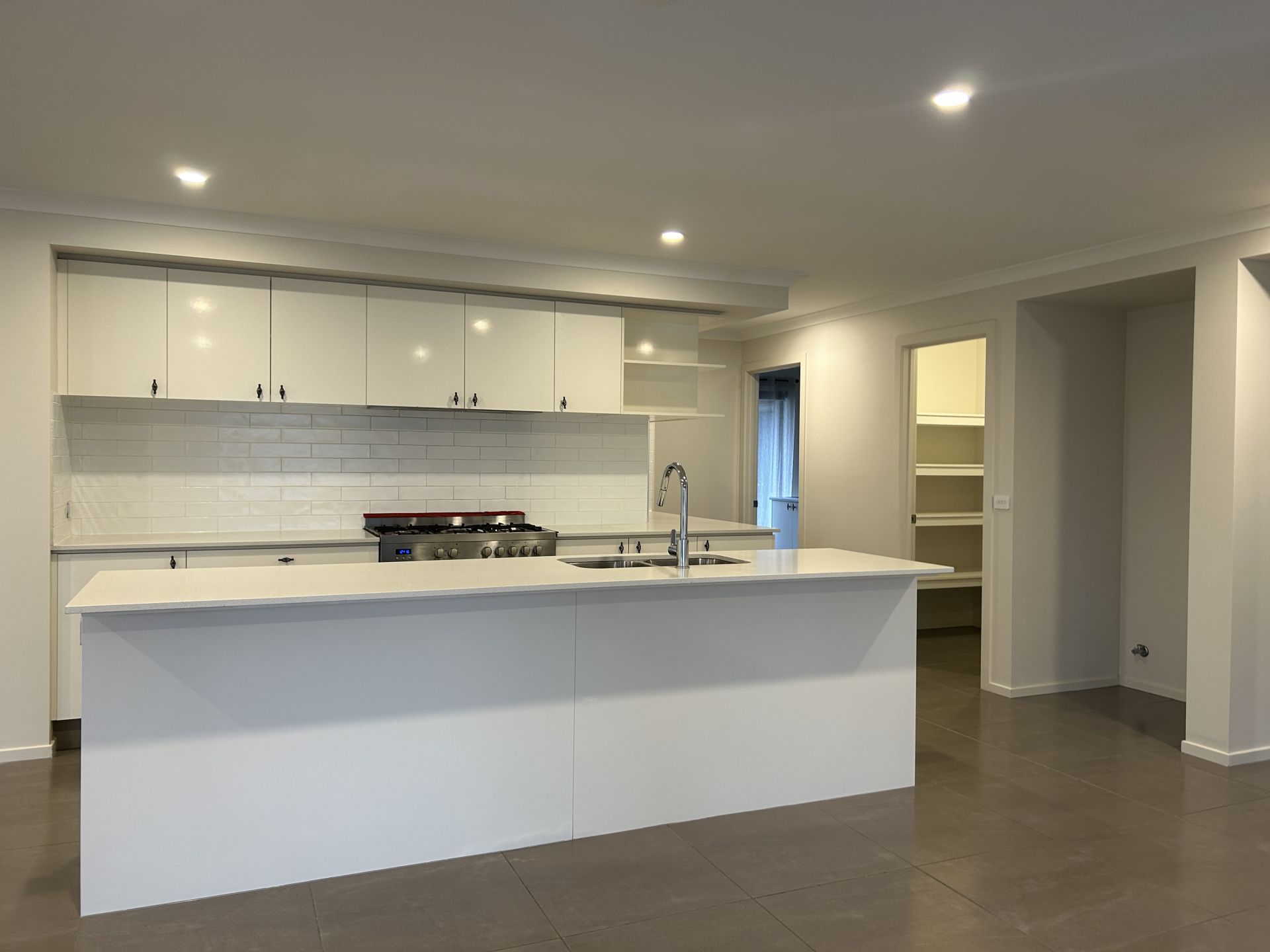 • Kitchen with walk in pantry, dishwasher and gas stove.