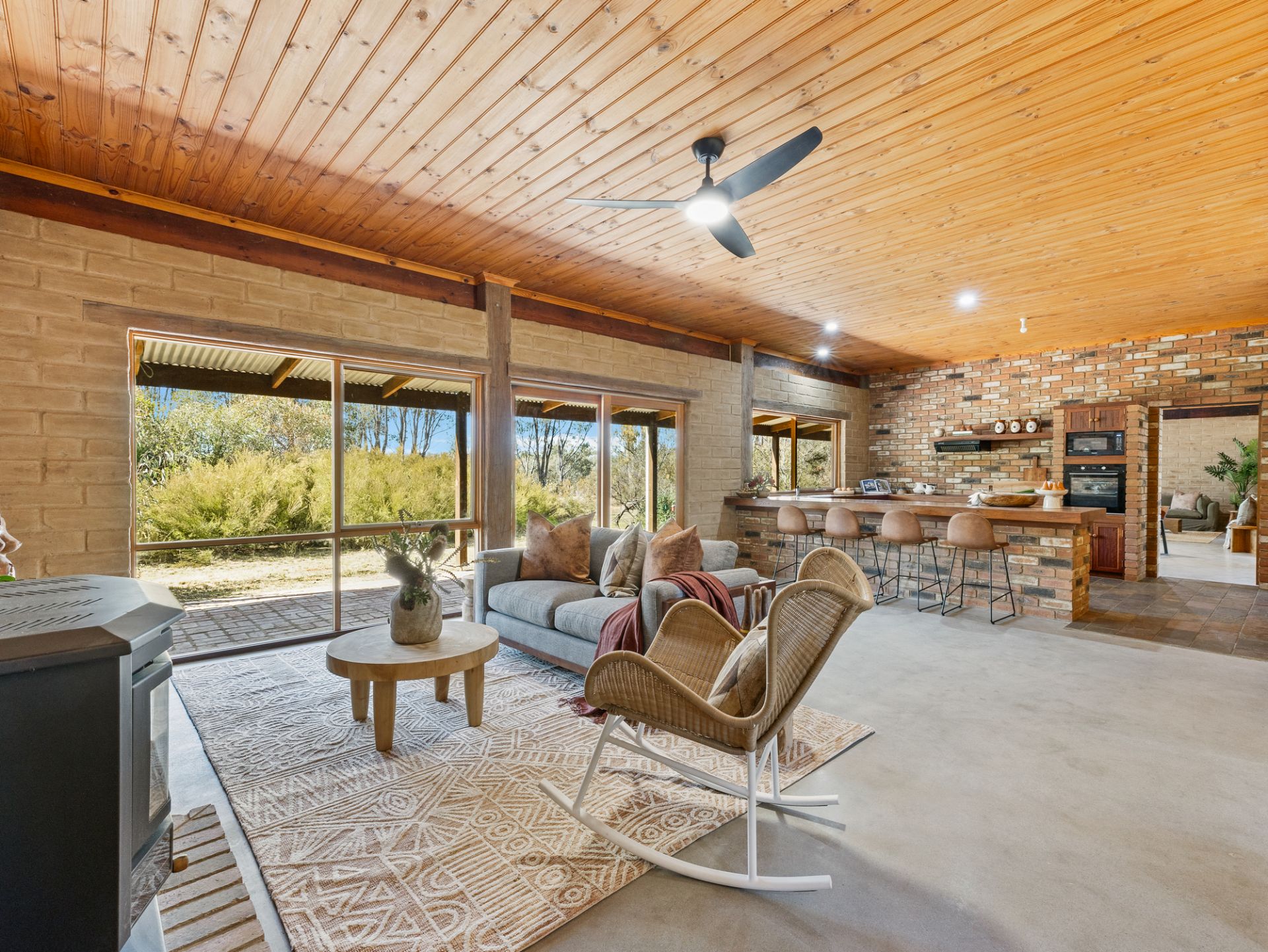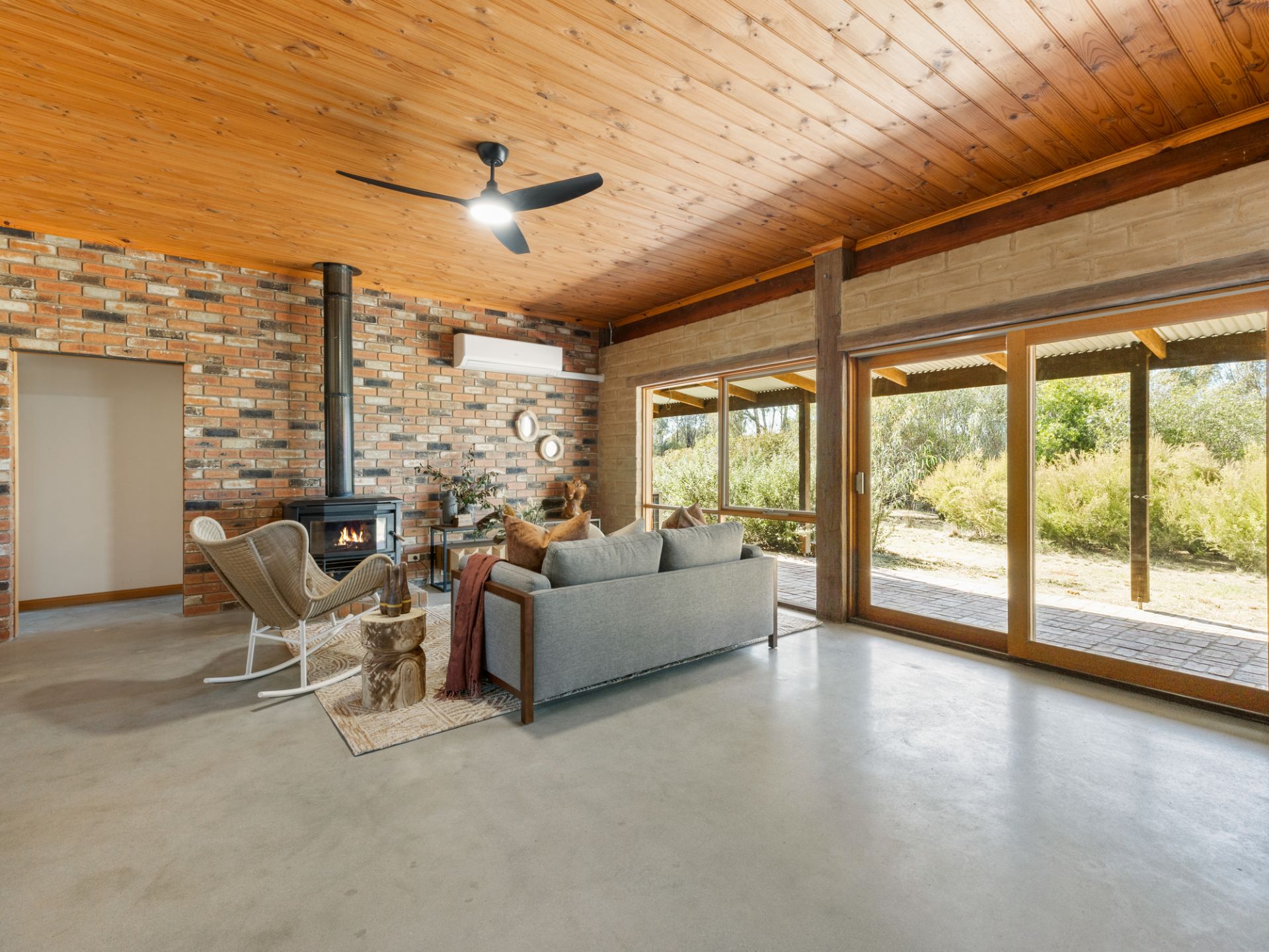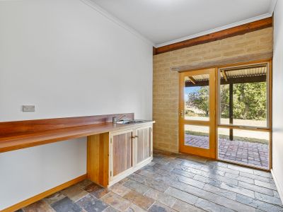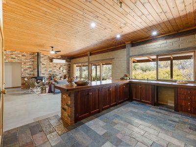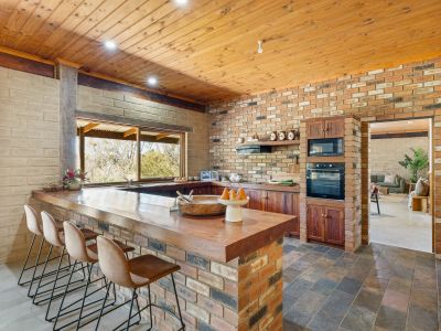 The spacious lounge with cosy open fire place sets the scene for the rest of the home with adjoining dining area and main bedroom, ensuite and walk in wardrobe. Through to the show stopping, central kitchen which is the real heart of the home. Stunning red gum benches, spacious pantry and all new electric appliances. Open plan family room adjoins the kitchen with another wood heater, garden views from every window and access out to the brick paved, wrap around verandah.