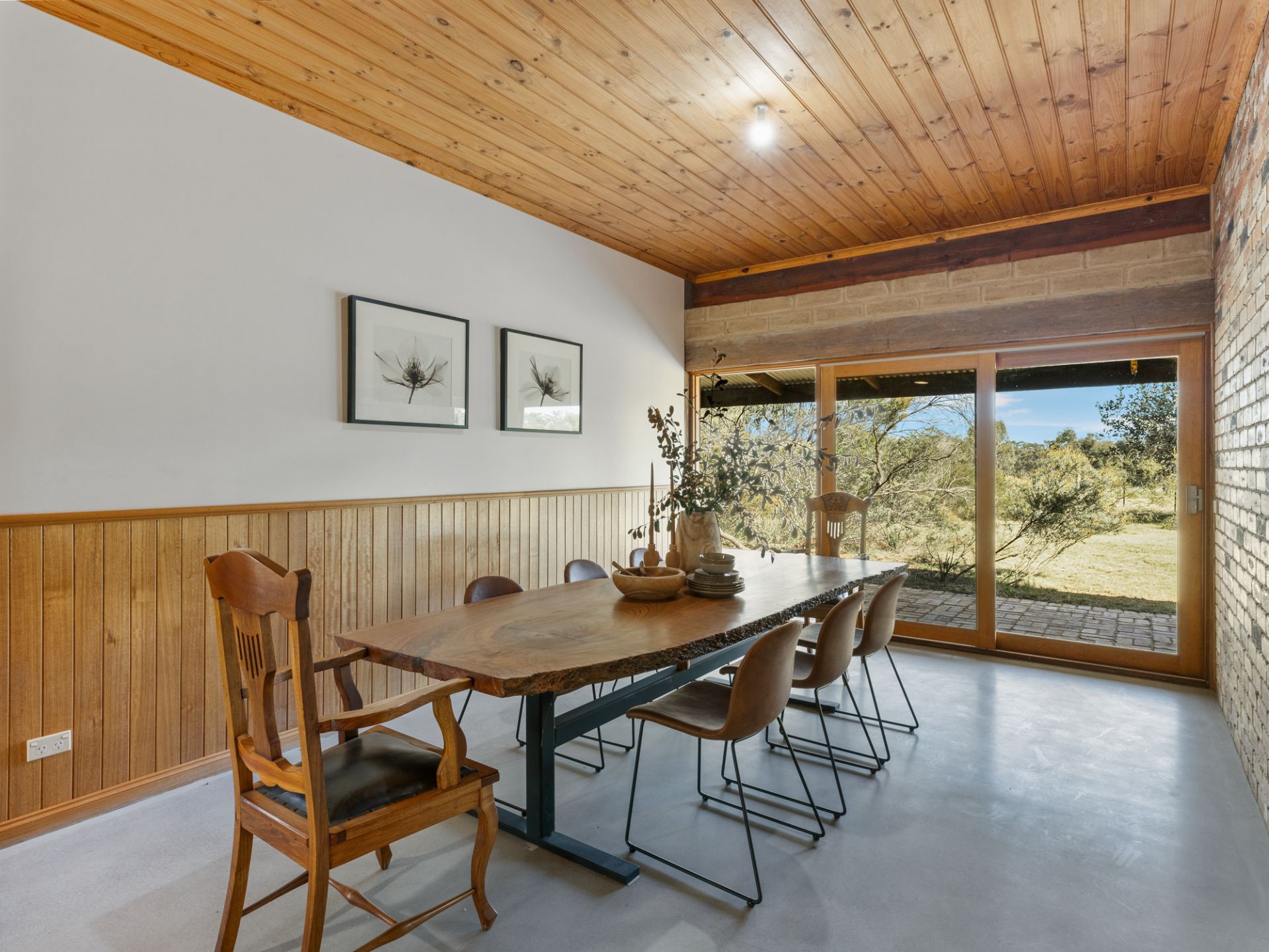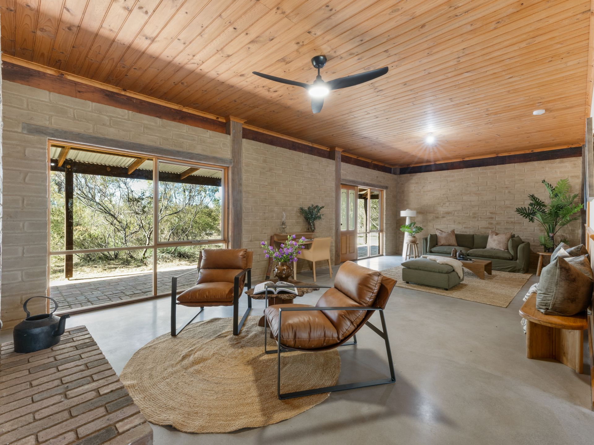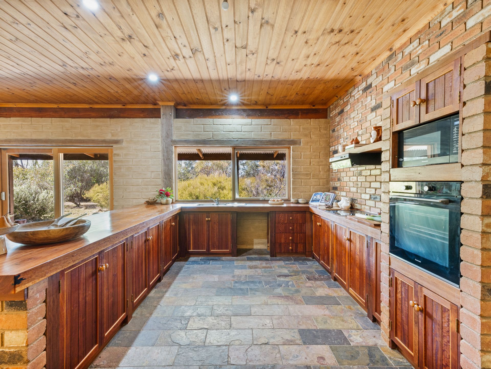 The spacious lounge with cosy open fire place sets the scene for the rest of the home with adjoining dining area and main bedroom, ensuite and walk in wardrobe. Through to the show stopping, central kitchen which is the real heart of the home. Stunning red gum benches, spacious pantry and all new electric appliances. Open plan family room adjoins the kitchen with another wood heater, garden views from every window and access out to the brick paved, wrap around verandah.