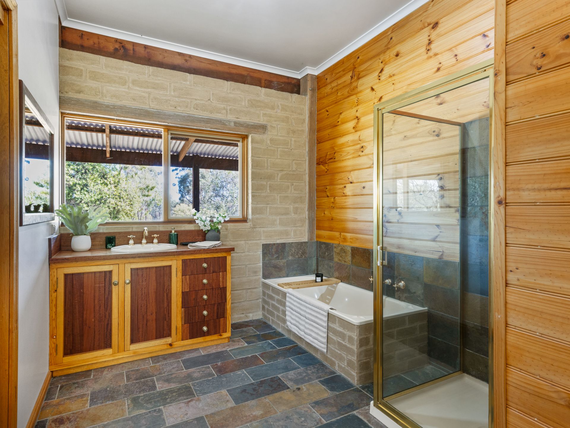 • Slate flooring in the wet areas and as new carpet in the bedrooms.