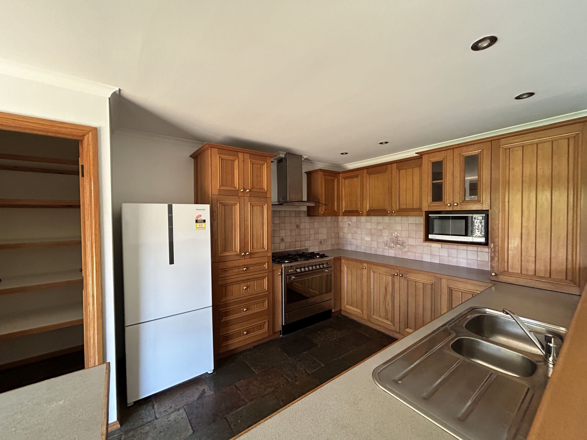 • Kitchen with gas stove & large pantry.