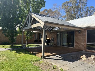• Sliding doors from dining to outdoor entertainment deck.