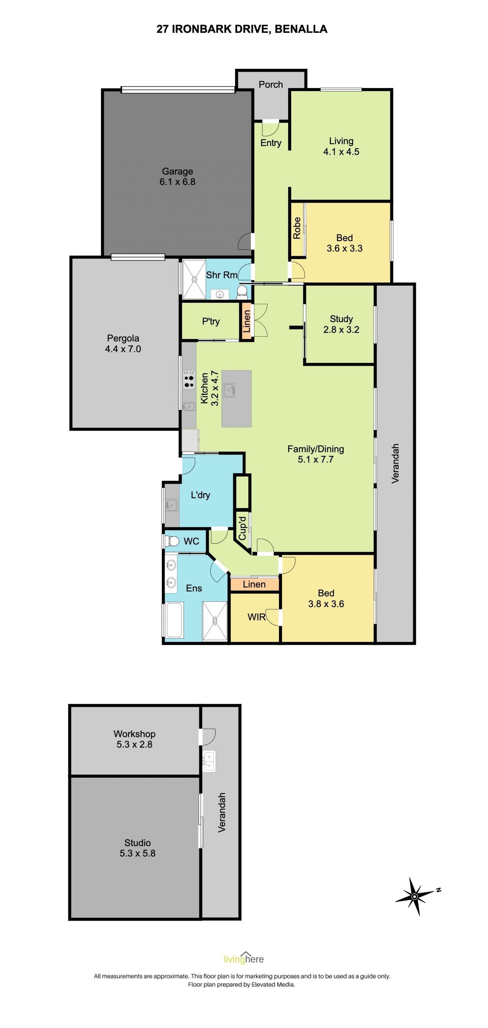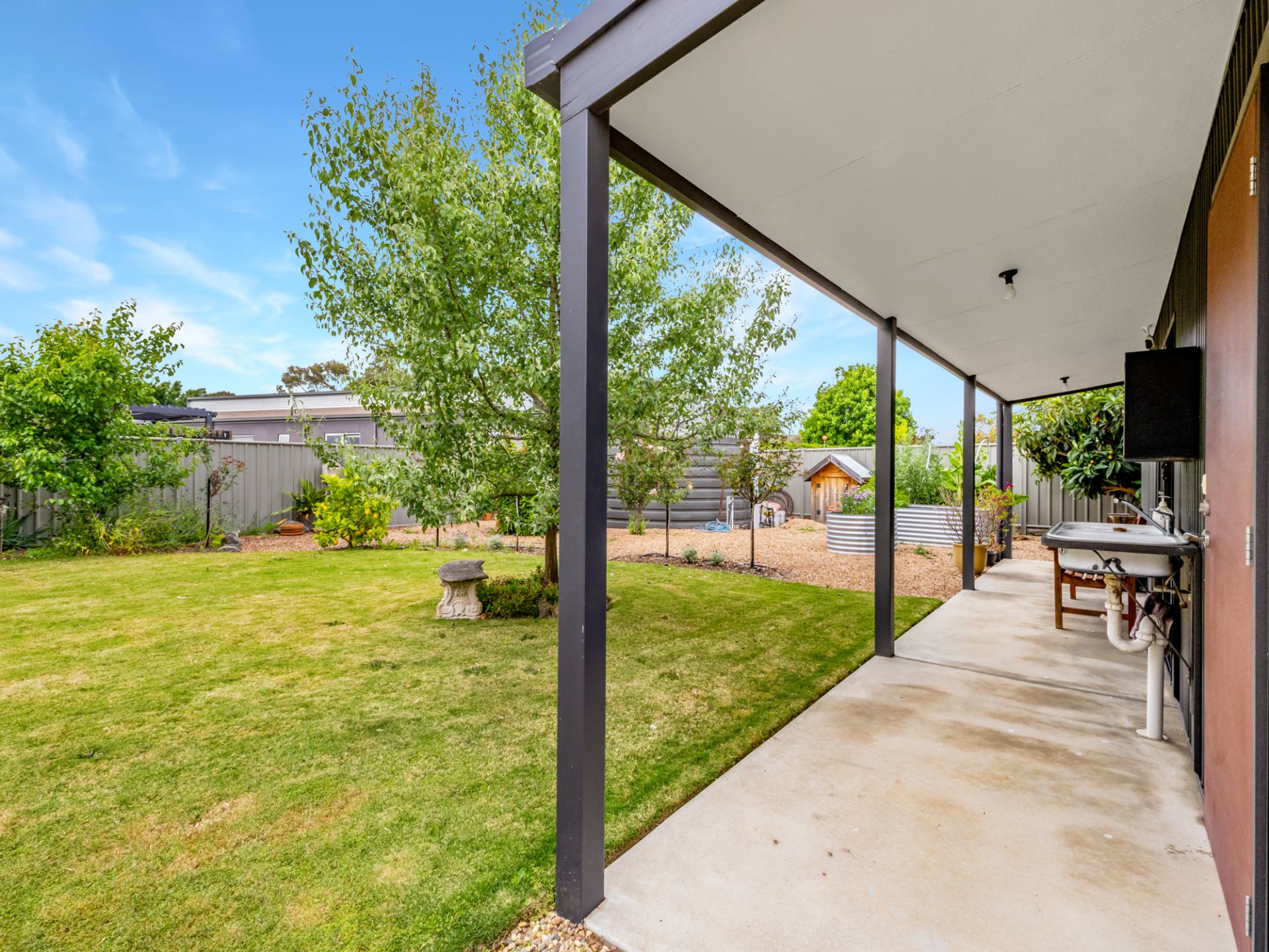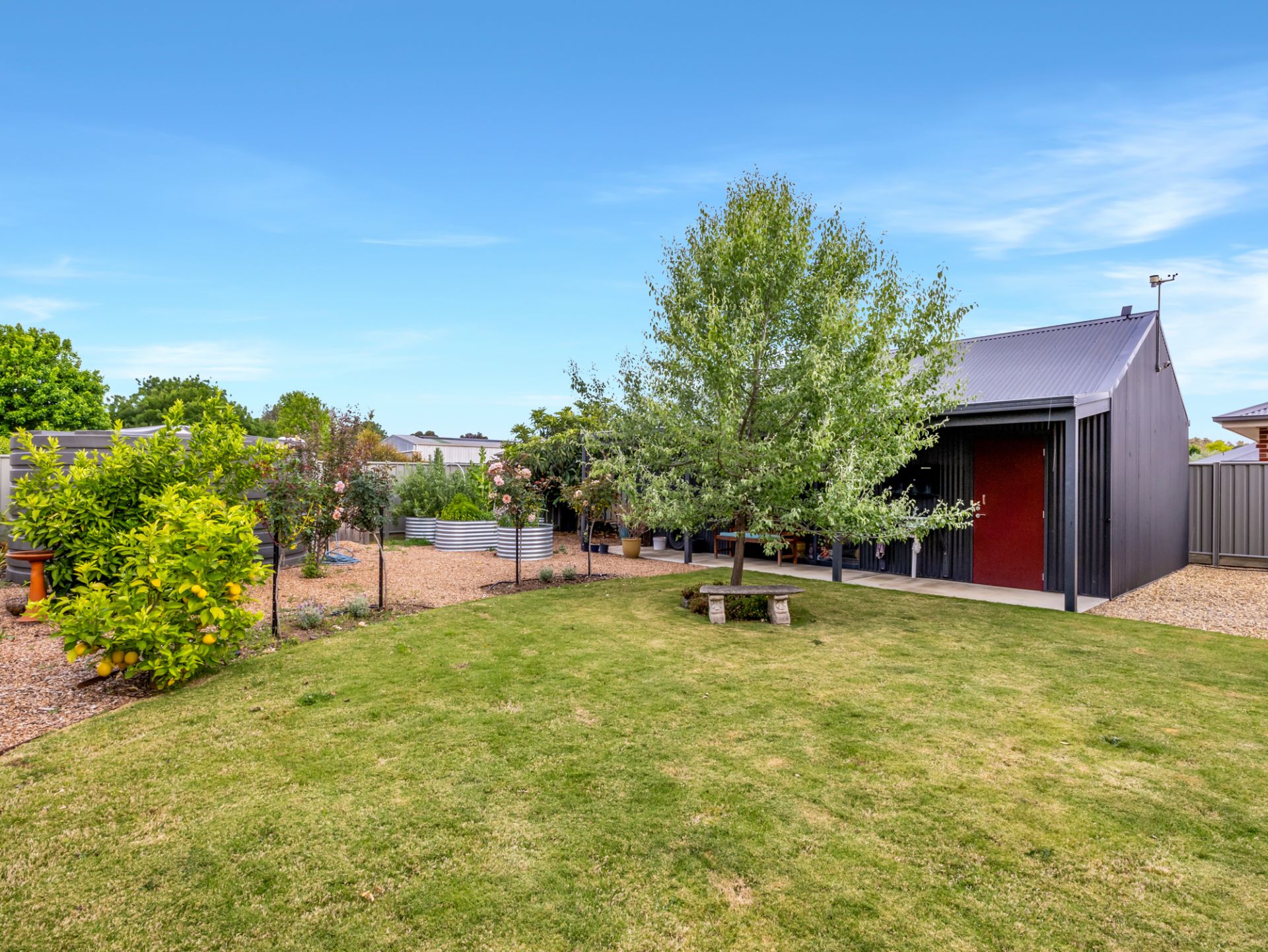 Living Here Benalla welcomes you to 27 Ironbark Drive, where modern architecture with stunning features allows for a beautiful lifestyle in one of Benalla's most sought after locations. This lovely property was designed specifically to suit our Vendors needs and is currently configured as a 2 bedroom, study and 2 living area home but has the flexibility to easily be converted to 3 bedrooms or even 4. The main living area of the house is the open plan kitchen/dining/lounge with large island bench for entertaining, walk in pantry, induction cooktop, electric oven and matching convection microwave. The oversized laundry sits off the kitchen and provides for further entertaining options with its storage and space with direct access to the outdoor entertaining area. The master suite sits to the east of the house with an abundance of storage and full bathroom with separate toilet, whilst the west side features the other bathroom, bedroom, lounge and study. Split system heating and cooling service the home and are more than generously accommodated with the 20 solar panels with 3 inline batteries. The orientation of the house has north facing living areas, allowing gorgeous natural light plus cross flow ventilation through thermally glazed windows and doors, which when opened achieve the desired affect of this sustainable home.The property is situated on just over 1000m2, with both north and south facing outdoor entertaining areas. Large 8.6m X 5.3m shed with workshop and verandah, double garage with access to the rear yard. Garden with planter beds, water tank and mature trees, inviting birdlife. The features of this property are too numerous to note and an inspection is certainly a must.