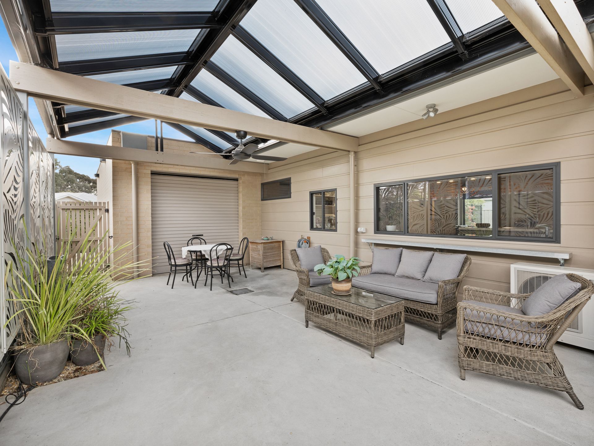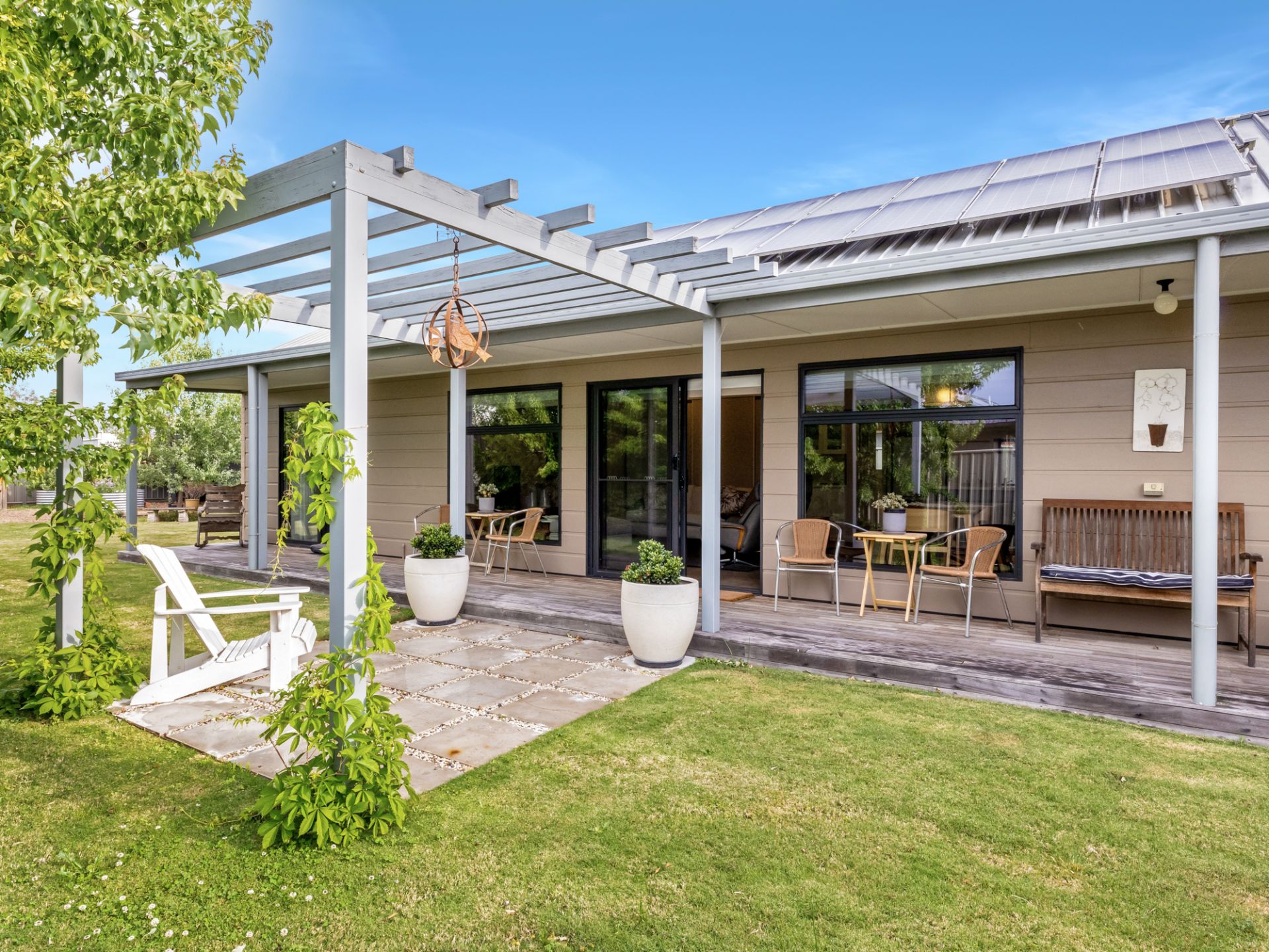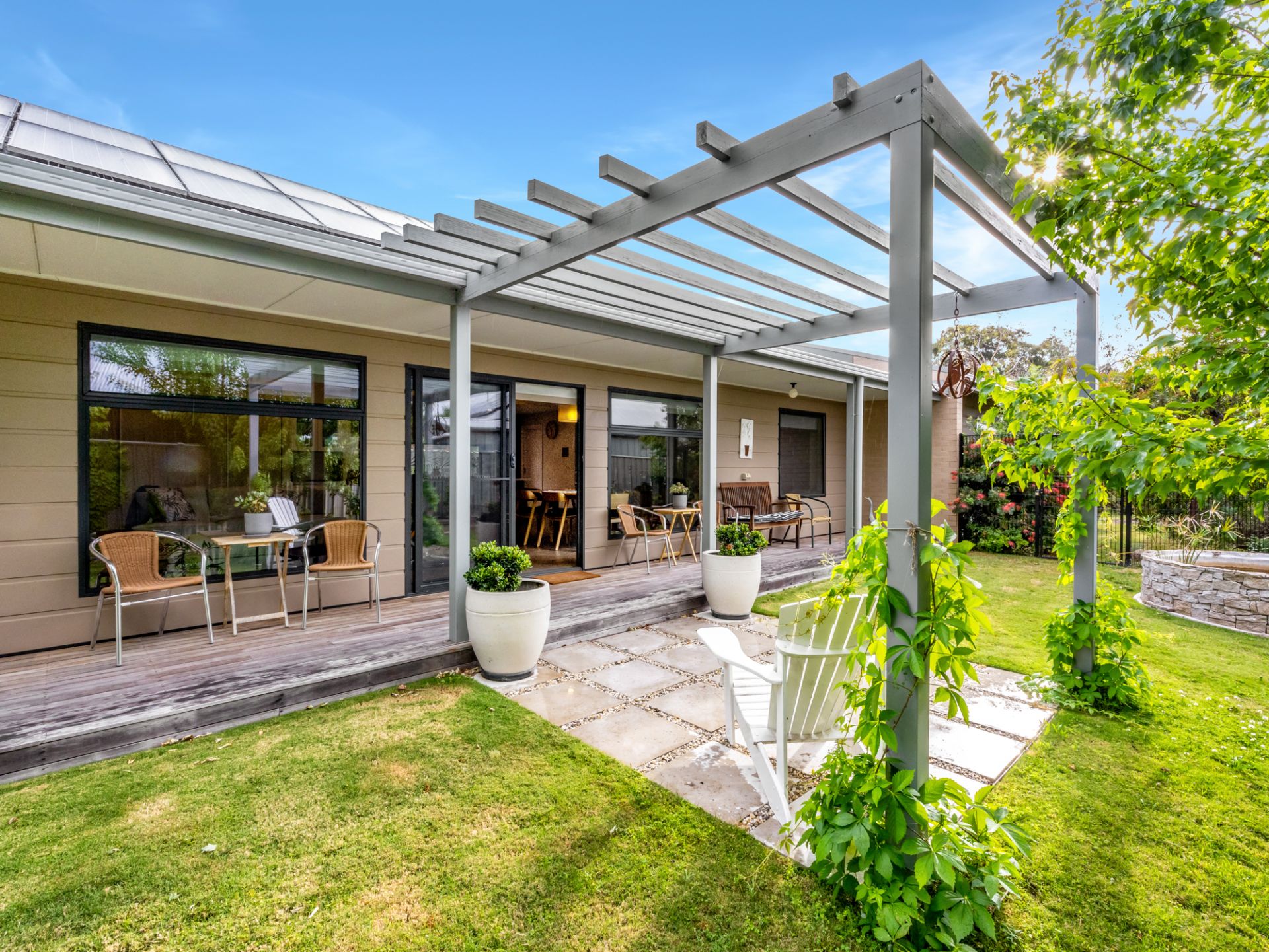 Living Here Benalla welcomes you to 27 Ironbark Drive, where modern architecture with stunning features allows for a beautiful lifestyle in one of Benalla's most sought after locations. This lovely property was designed specifically to suit our Vendors needs and is currently configured as a 2 bedroom, study and 2 living area home but has the flexibility to easily be converted to 3 bedrooms or even 4. The main living area of the house is the open plan kitchen/dining/lounge with large island bench for entertaining, walk in pantry, induction cooktop, electric oven and matching convection microwave. The oversized laundry sits off the kitchen and provides for further entertaining options with its storage and space with direct access to the outdoor entertaining area. The master suite sits to the east of the house with an abundance of storage and full bathroom with separate toilet, whilst the west side features the other bathroom, bedroom, lounge and study. Split system heating and cooling service the home and are more than generously accommodated with the 20 solar panels with 3 inline batteries. The orientation of the house has north facing living areas, allowing gorgeous natural light plus cross flow ventilation through thermally glazed windows and doors, which when opened achieve the desired affect of this sustainable home.The property is situated on just over 1000m2, with both north and south facing outdoor entertaining areas. Large 8.6m X 5.3m shed with workshop and verandah, double garage with access to the rear yard. Garden with planter beds, water tank and mature trees, inviting birdlife. The features of this property are too numerous to note and an inspection is certainly a must.