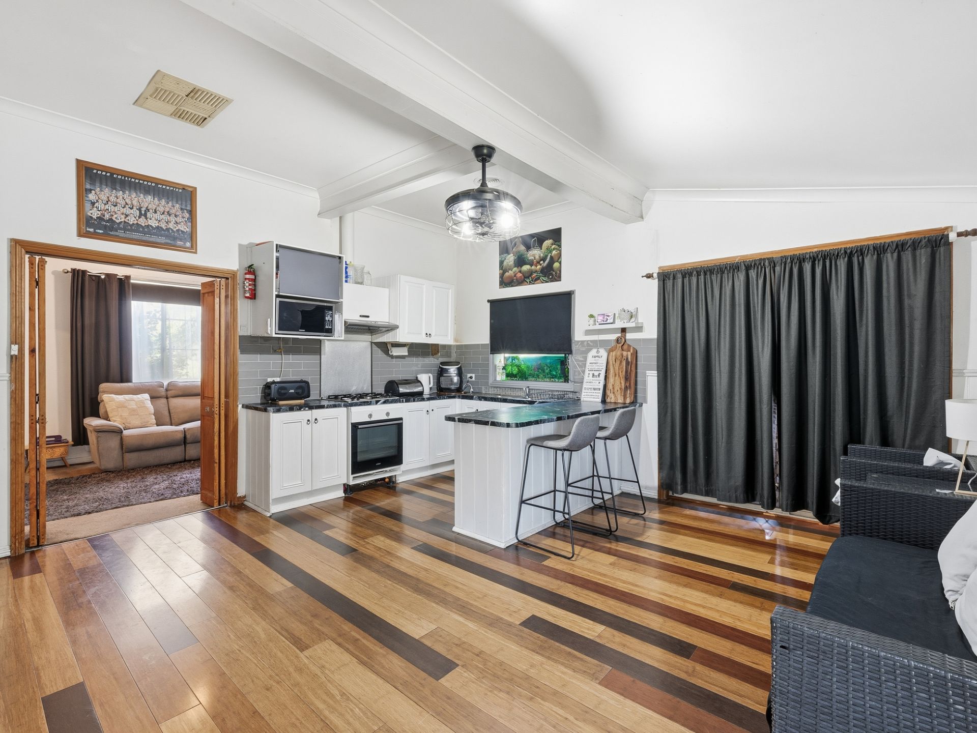 • Updated Kitchen & Meals Area: The heart of the home features a modern kitchen fitted with a gas cooktop and electric under-bench oven, ideal for culinary enthusiasts and family gatherings.